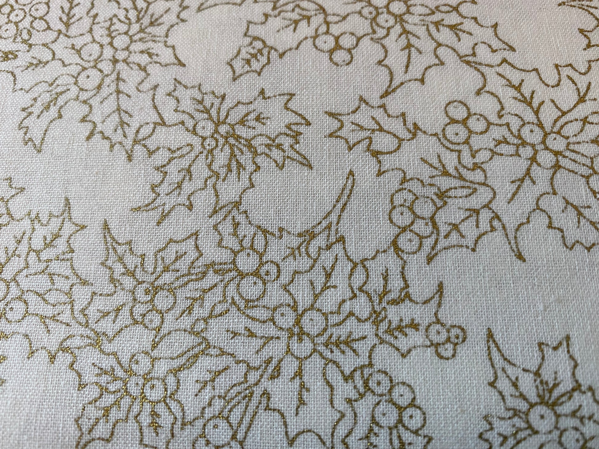 John Louden Christmas 100% Cotton Fabric - Gold Holly on Cream Background